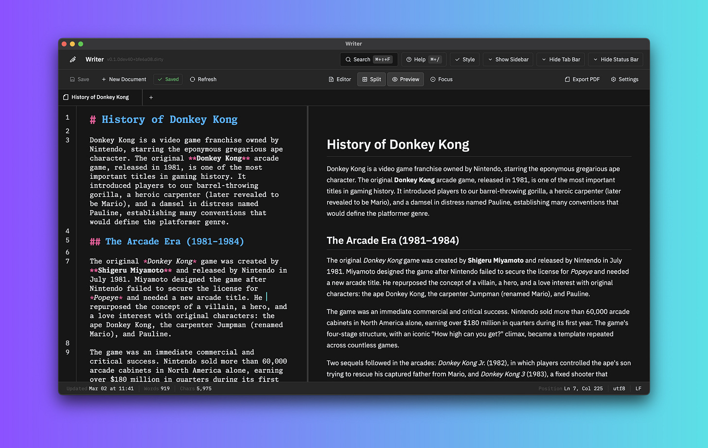 For the past month or so I’ve been working on a bunch of tauri apps, each with a different front-end framework. The first one I want to talk about is Writer. It’s inspired by iaWriter in that it’s basically my attempt at remaking iaWriter with tools and libraries I know how to use. I also added some features that are a bit like Things, specifically the quick capture system.